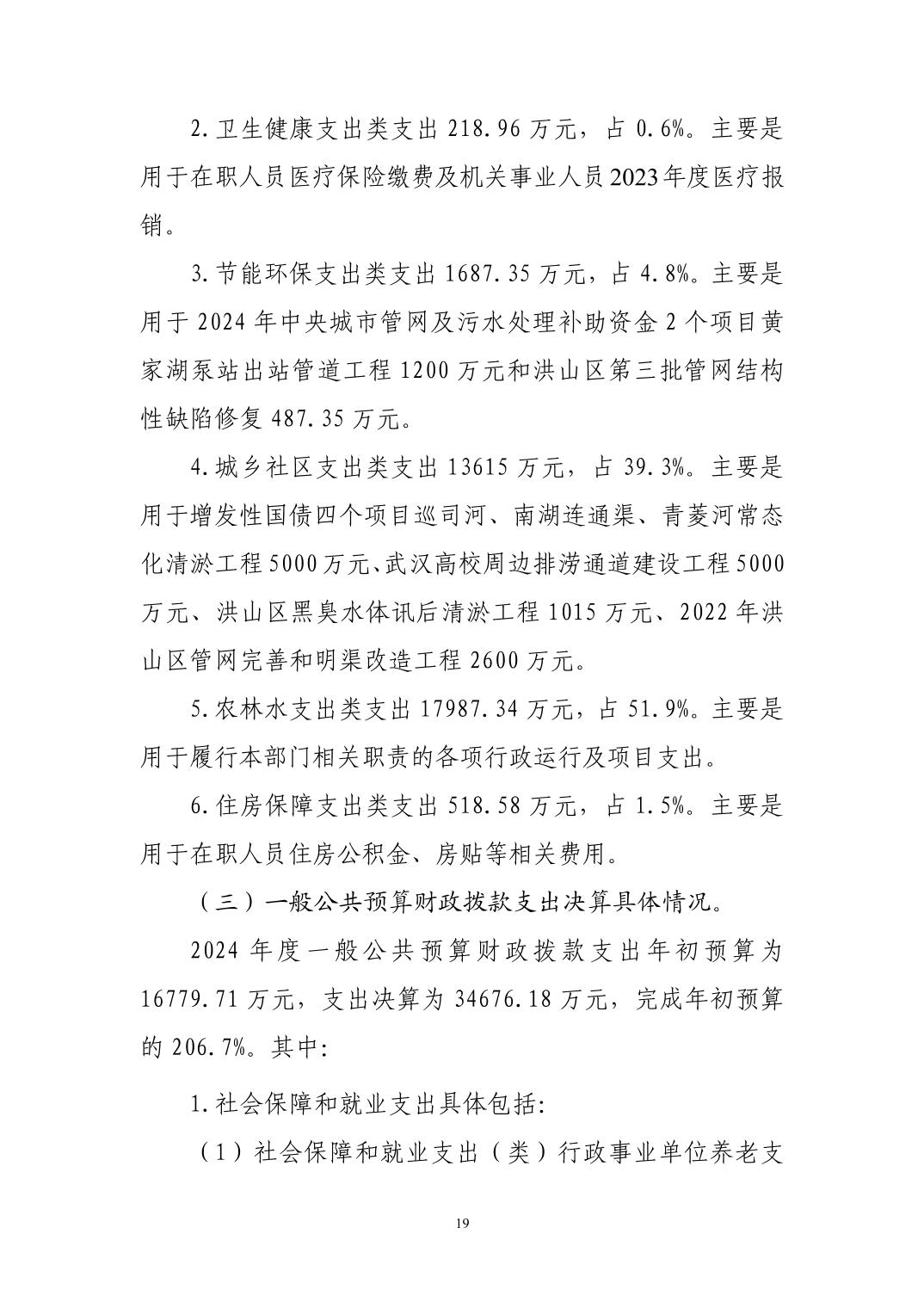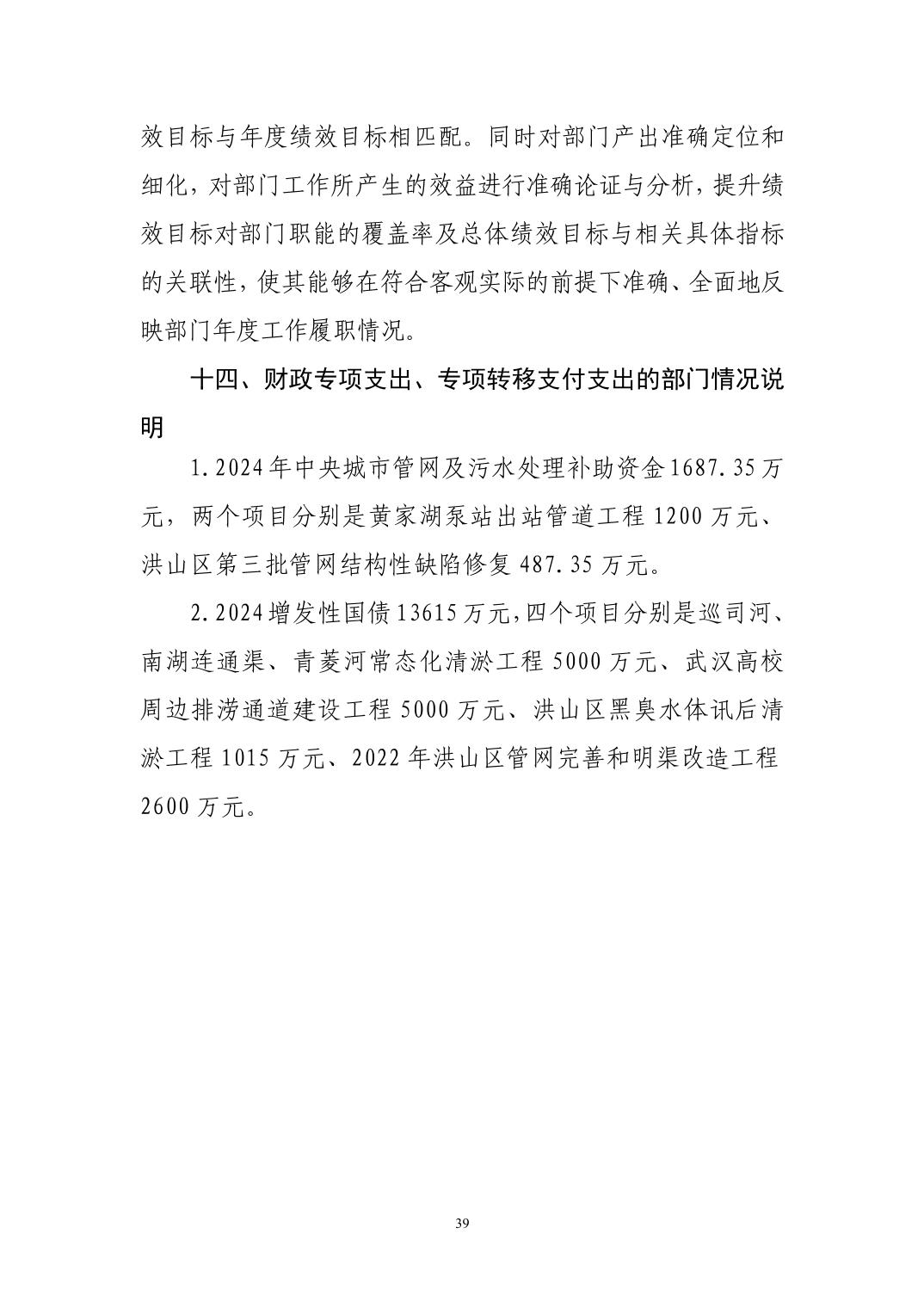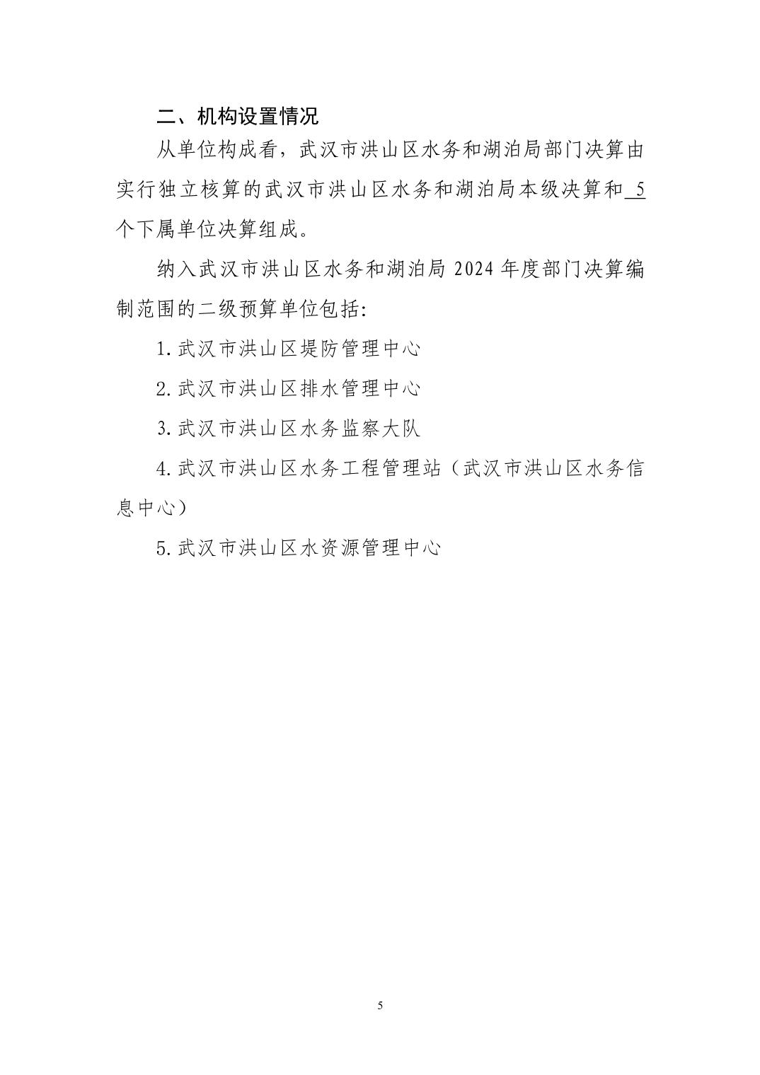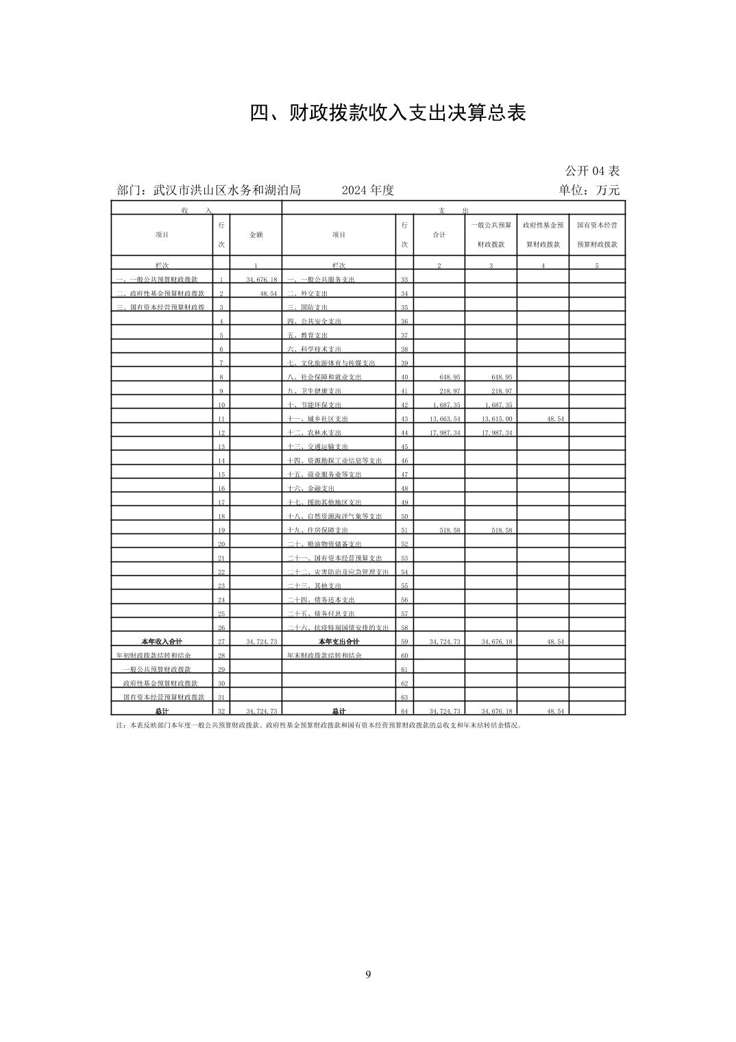 名 称:武汉市洪山区水务和湖泊局(汇总)2024年度部门决算公开