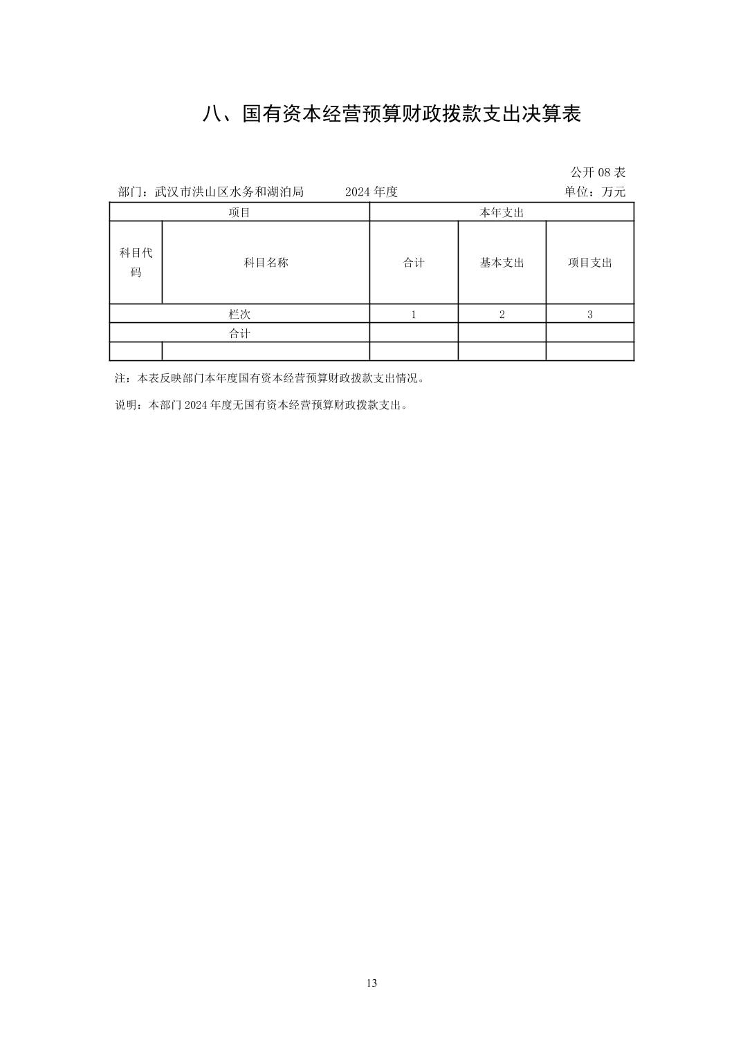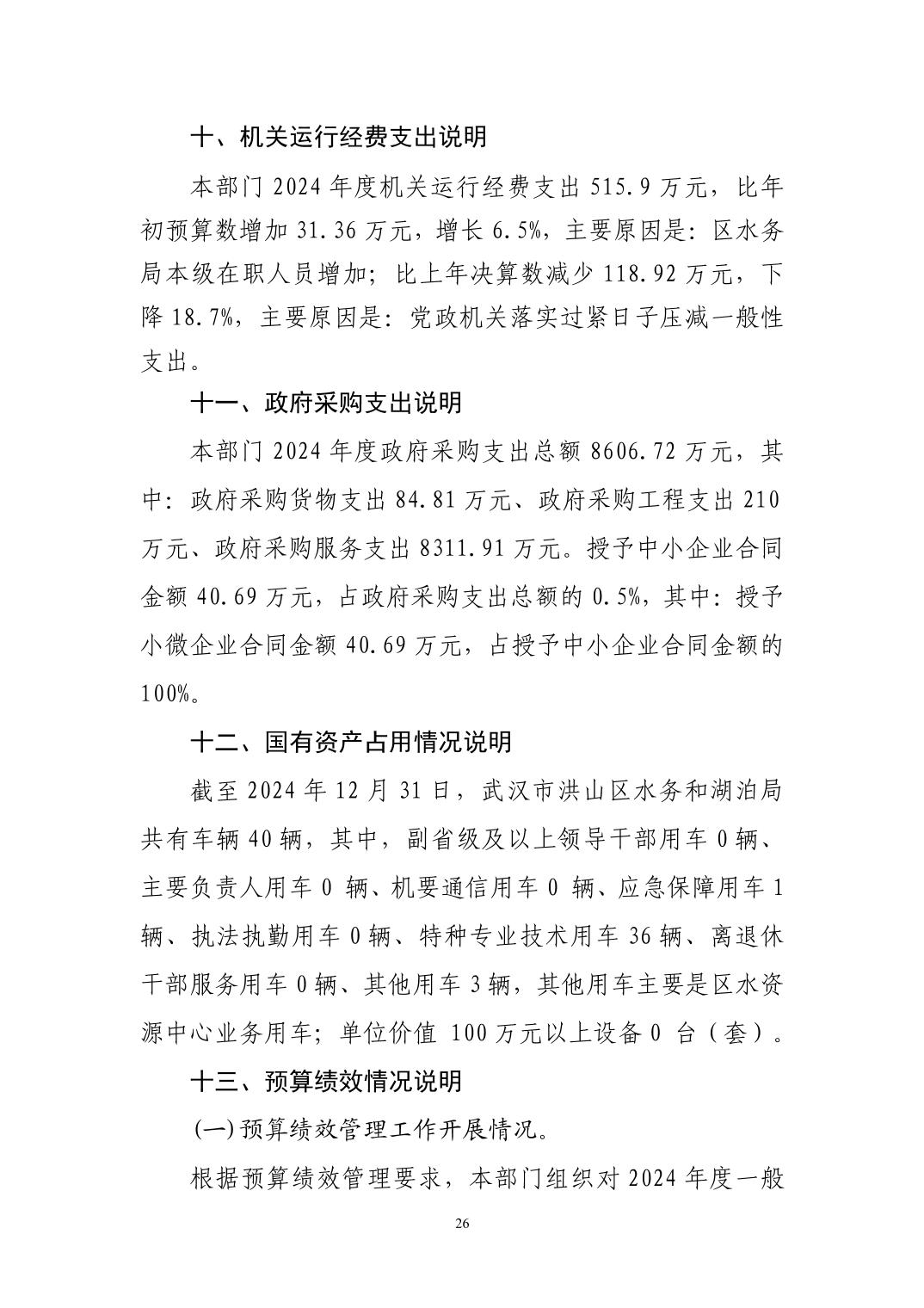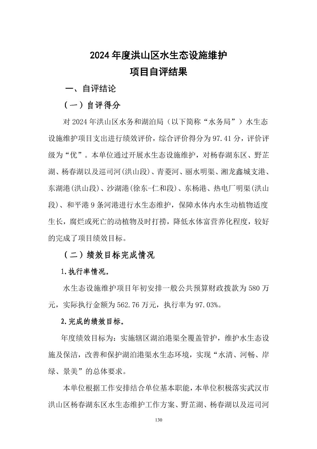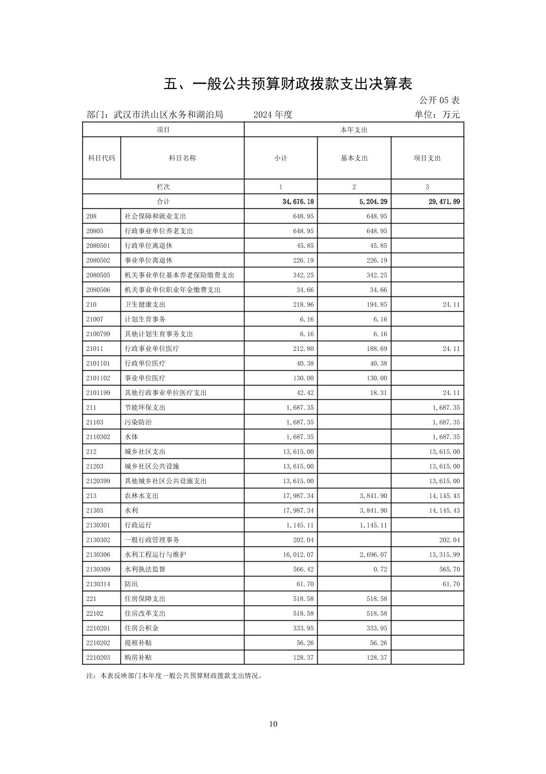 名 称:武汉市洪山区水务和湖泊局(汇总)2024年度部门决算公开