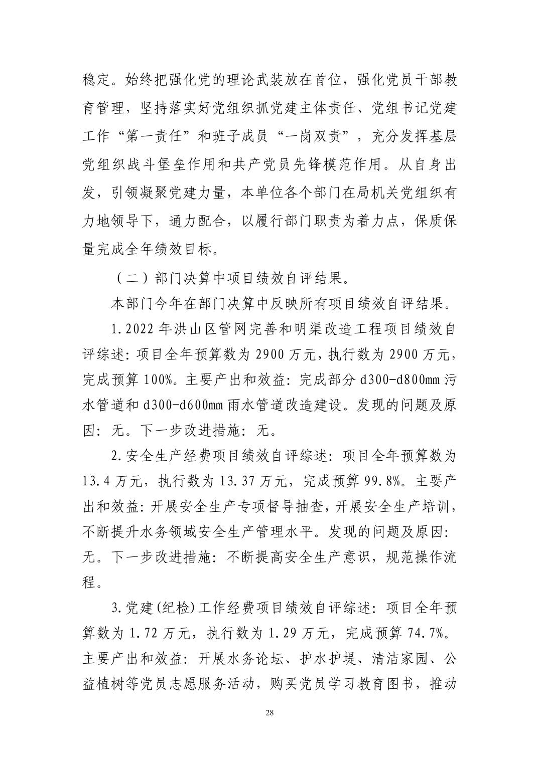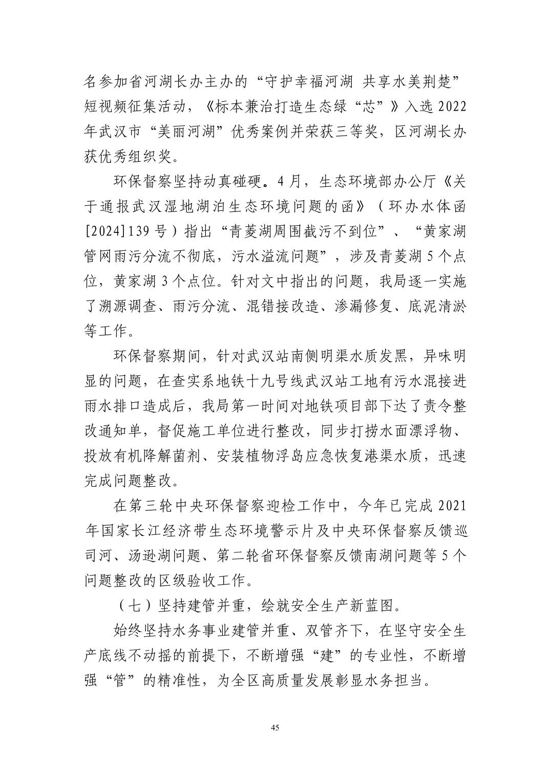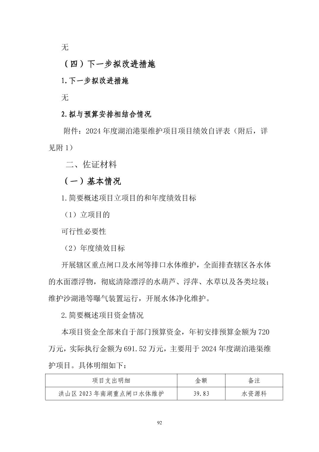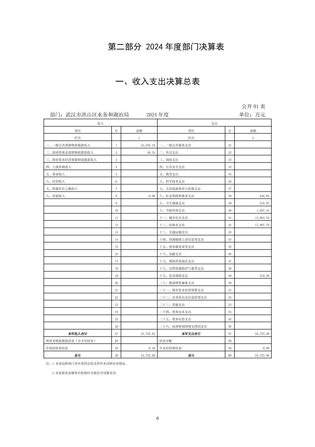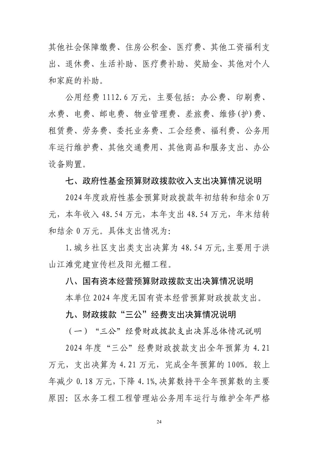 名 称:武汉市洪山区水务和湖泊局(汇总)2024年度部门决算公开