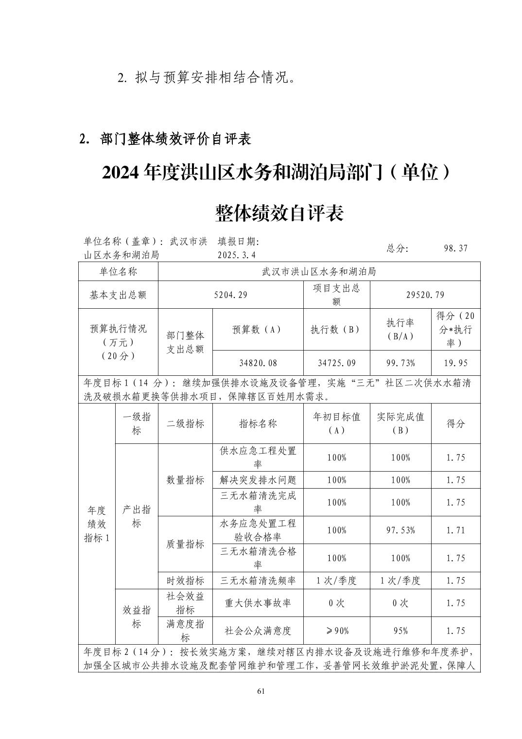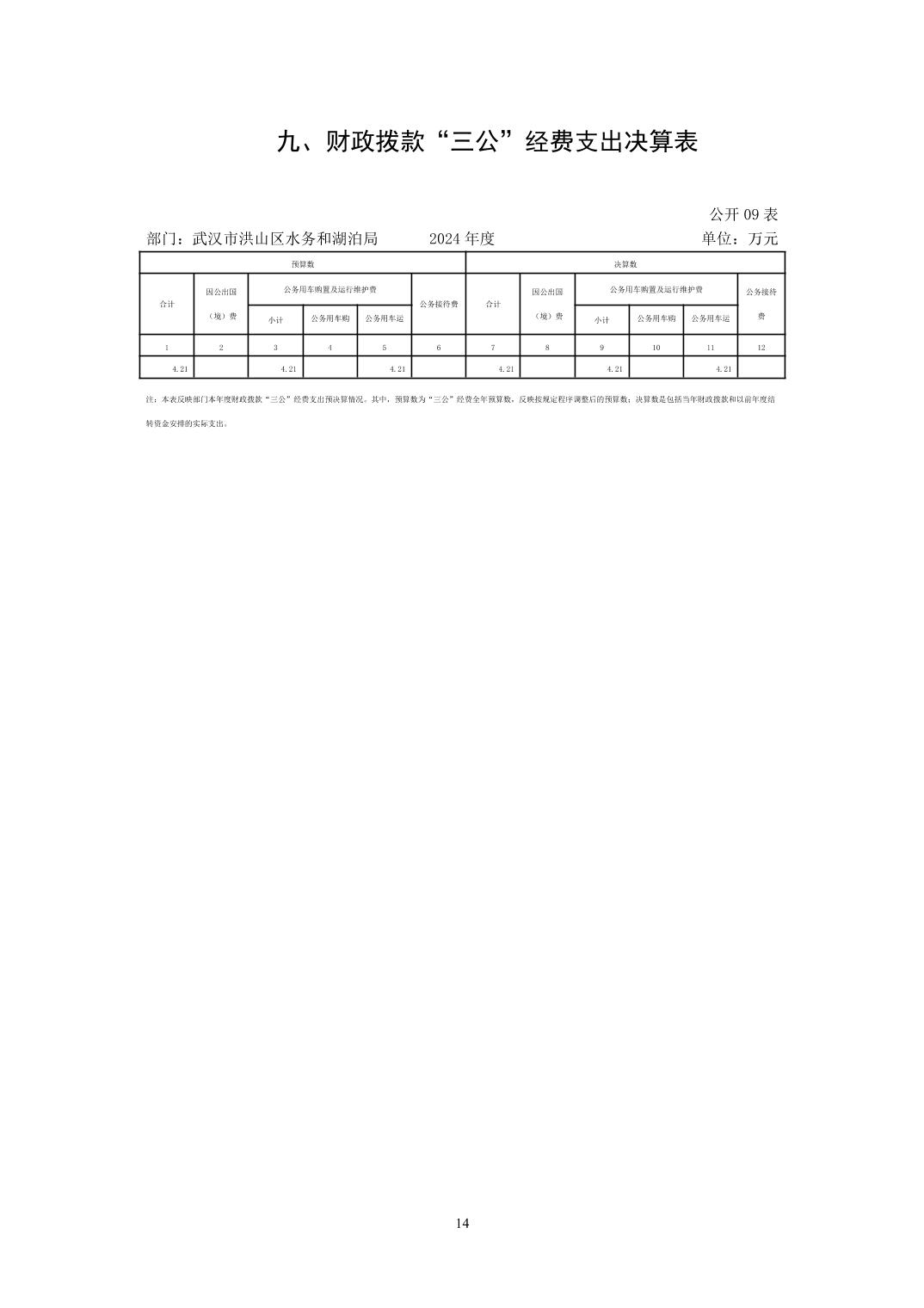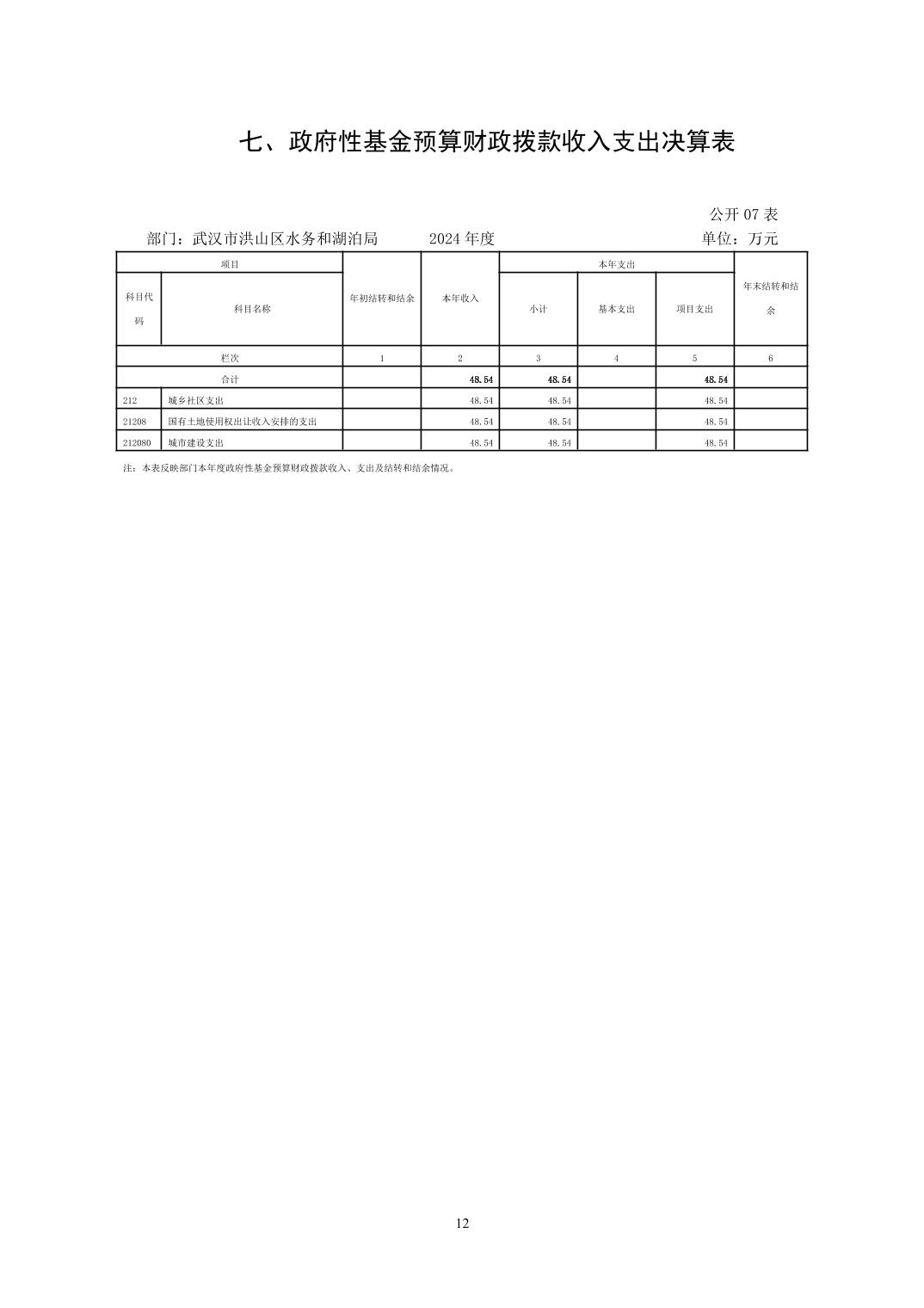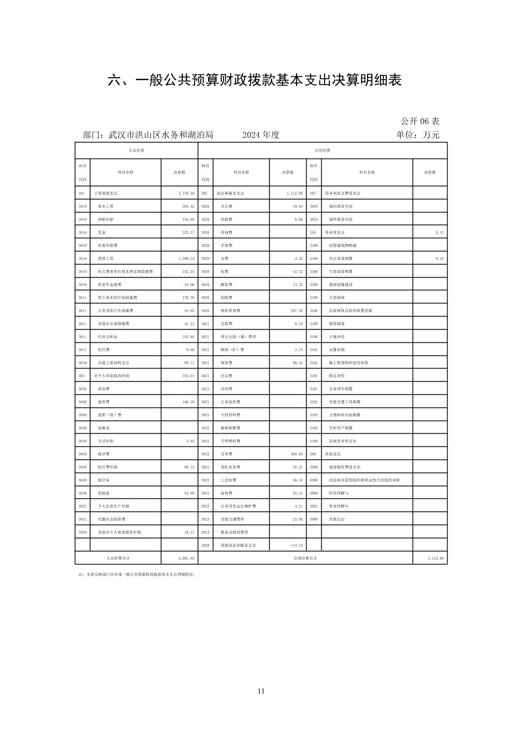 名 称:武汉市洪山区水务和湖泊局(汇总)2024年度部门决算公开