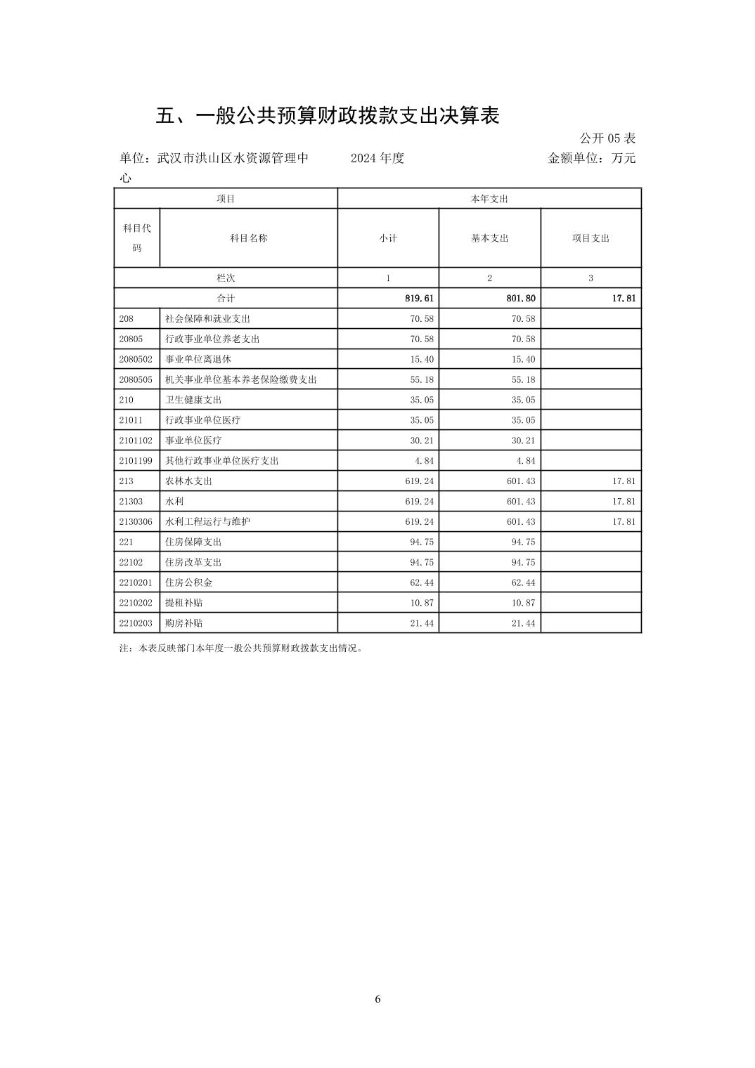 名 称:武汉市洪山区水资源管理中心2024年度单位决算公开