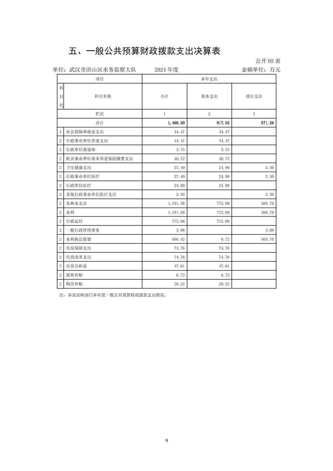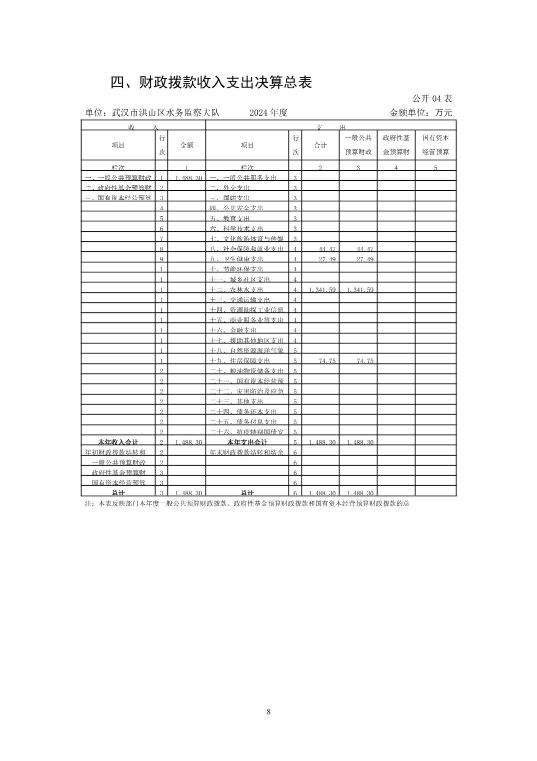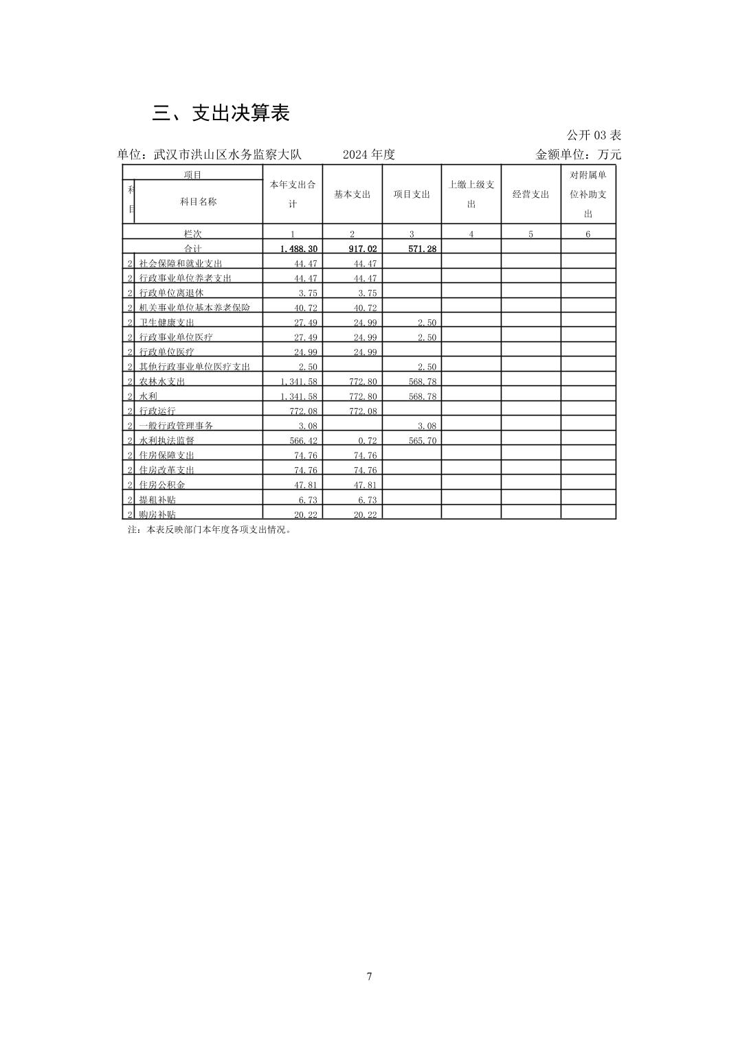 名 称:武汉市洪山区水务监察大队2024年度单位决算公开