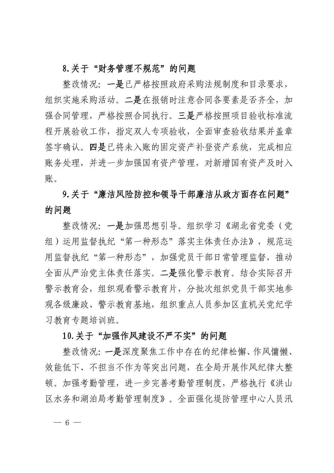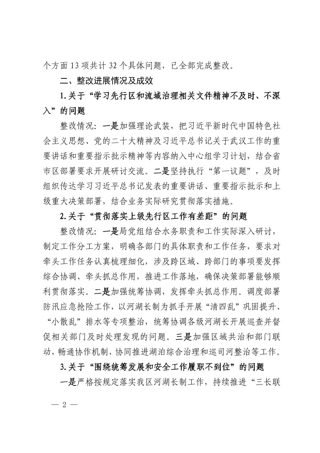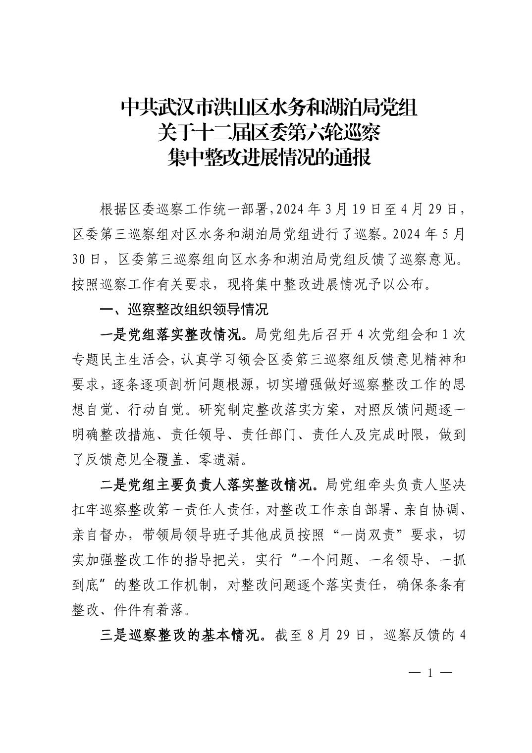 名 称:中共武汉市洪山区水务和湖泊局党组关于十二届区委第六轮巡察集中整改进展情况的通报