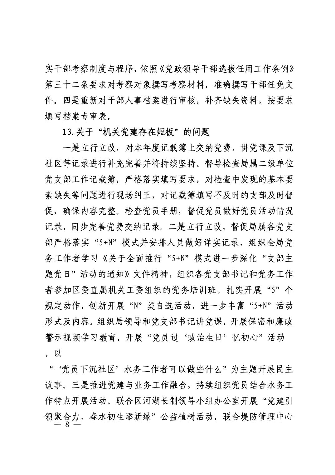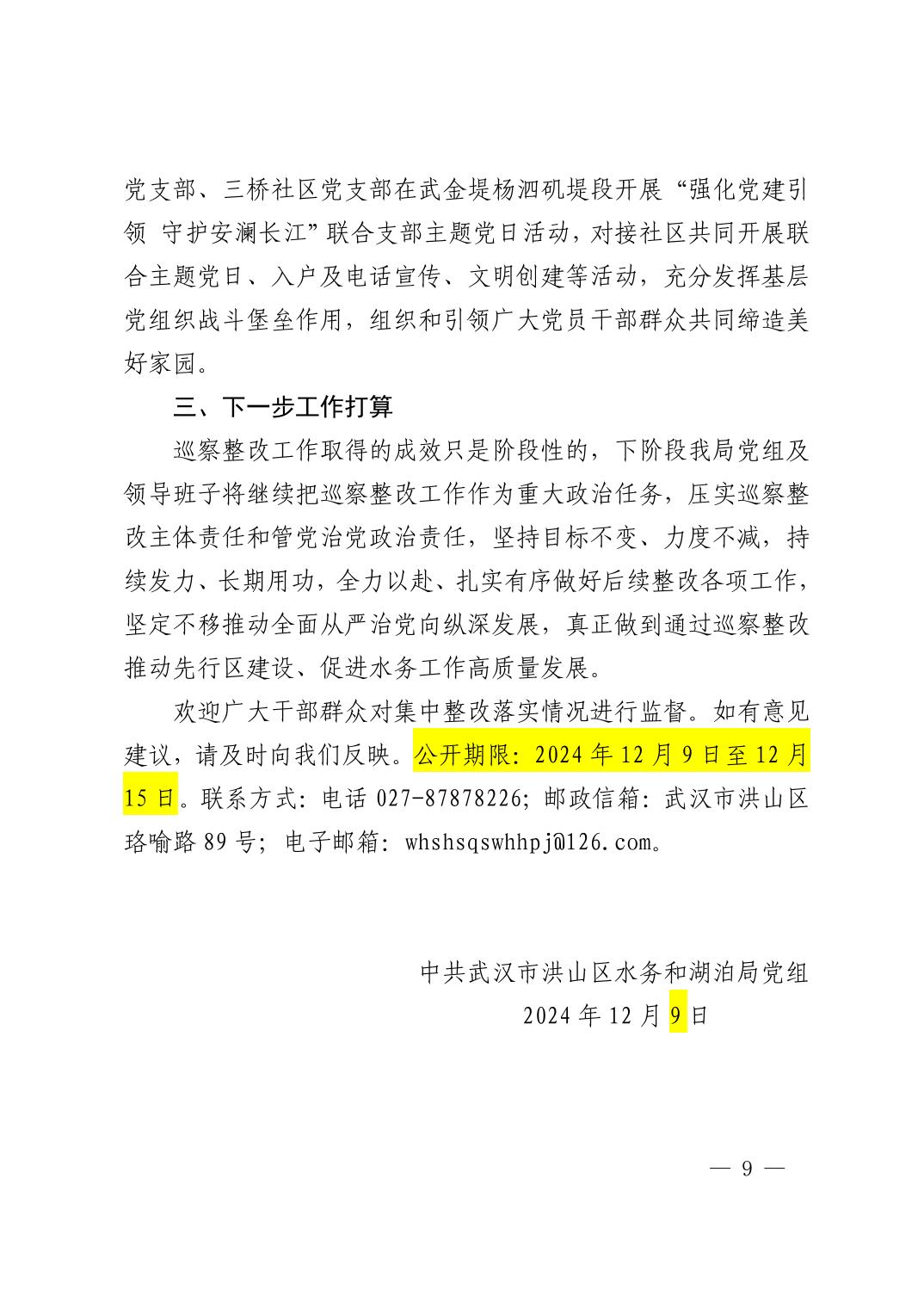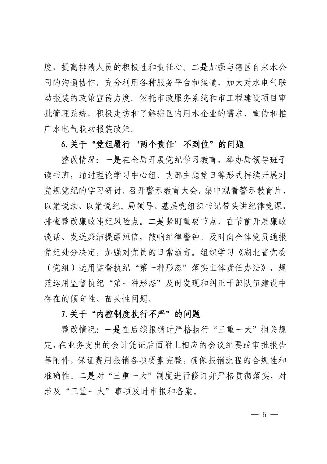 名 称:中共武汉市洪山区水务和湖泊局党组关于十二届区委第六轮巡察集中整改进展情况的通报