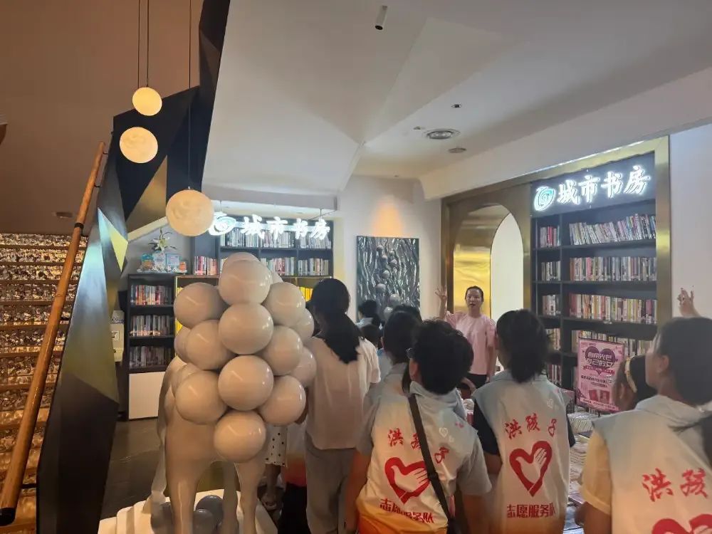 活动伊始,洪山区图书馆工作人员带领“洪孩子”们沉浸式探索城市书房。从分类清晰的阅读区、配备自助借还设备的便民服务区,到兼具舒适氛围与互动感的文化活动空间,工作人员细致讲解了城市书房的功能布局、服务项目与运营理念,让孩子们直观感受到“家门口图书馆”的便捷与温暖。