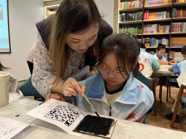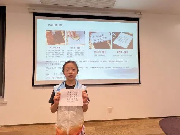 实践操作环节将活动推向高潮。在工作人员指导下,“洪孩子”们化身“小小印刷匠”,认真挑选活字、调整排版、均匀上墨、轻压宣纸。当亲手印制的清晰字迹呈现在宣纸上时,现场满是欢呼与惊叹,孩子们捧着作品互相分享,在指尖操作中直观感受非遗技艺的精妙,也深深体会到古人的匠心精神。