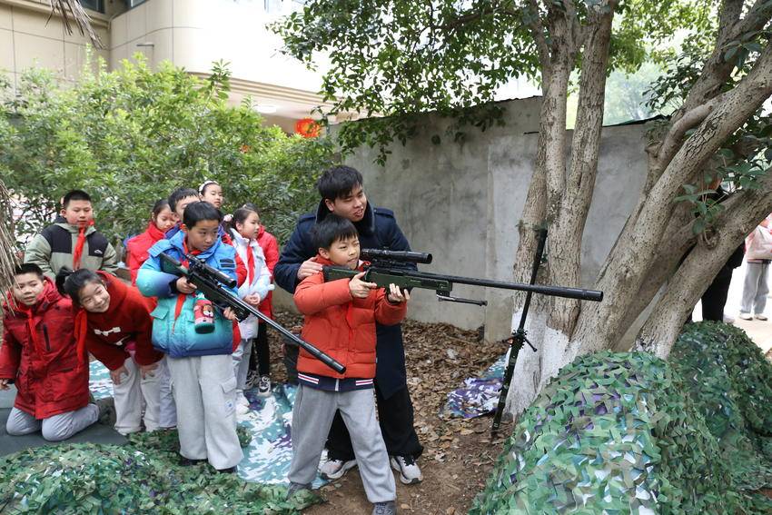 2月13日下午,由洪山区退役军人事务局在狮子山街道锦南村小区打造的爱国主义教育微基地迎来了洪山区第三小学的30名小学生,他们在这里开启了一场以“爱国强军砺壮志 开学筑梦启新程”为主题的“开学第一课”,通过“理论+实践”的沉浸式国防教育,在开学首日种下爱国强军的种子。