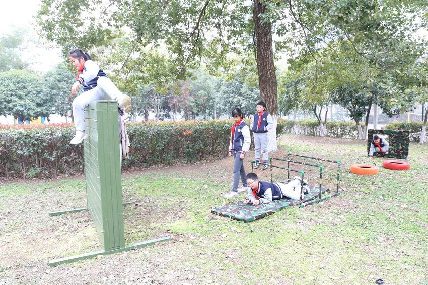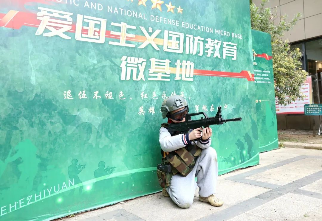 户外实践体验是本次活动的重头戏。同学们分组轮换,依次体验了模拟打靶、迷你越野挑战和小军迷变装打卡三个项目。在模拟打靶区域,教官认真示范安全操作流程,同学们屏息凝神,感受军事训练的紧张与刺激,完成人生首次射击体验;迷你越野挑战设置了简易障碍赛道,同学们在挑战中突破自我,锻炼强大的精神和意志力;小军迷变装打卡环节,大家换上装备,佩戴军械,英姿飒爽地“持枪”打卡留影,仿佛自己就是保家卫国的小战士。