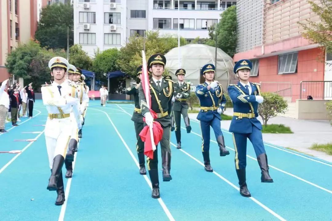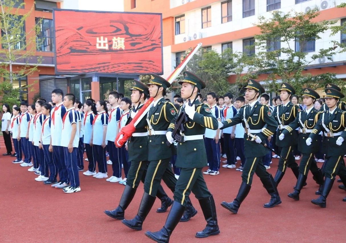 高校国旗班退役军人大学生走进中小学开展升旗仪式。