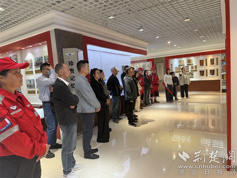 祭扫仪式结束后,为致敬红军长征胜利90周年,全体人员徒步前往空军武汉基地“老战士报告团”荣誉室,在现场庄严重温入党誓词。讲解员深情讲述了老红军、老八路历经枪林弹雨、饱经炮火洗礼的传奇革命故事,逐一展示了报告团成员珍藏的100余件功勋奖章、报告讲稿、红色教育资料。大家驻足凝视、认真聆听,在重温峥嵘岁月的过程中,接受了一场深刻的爱国主义教育和精神洗礼。