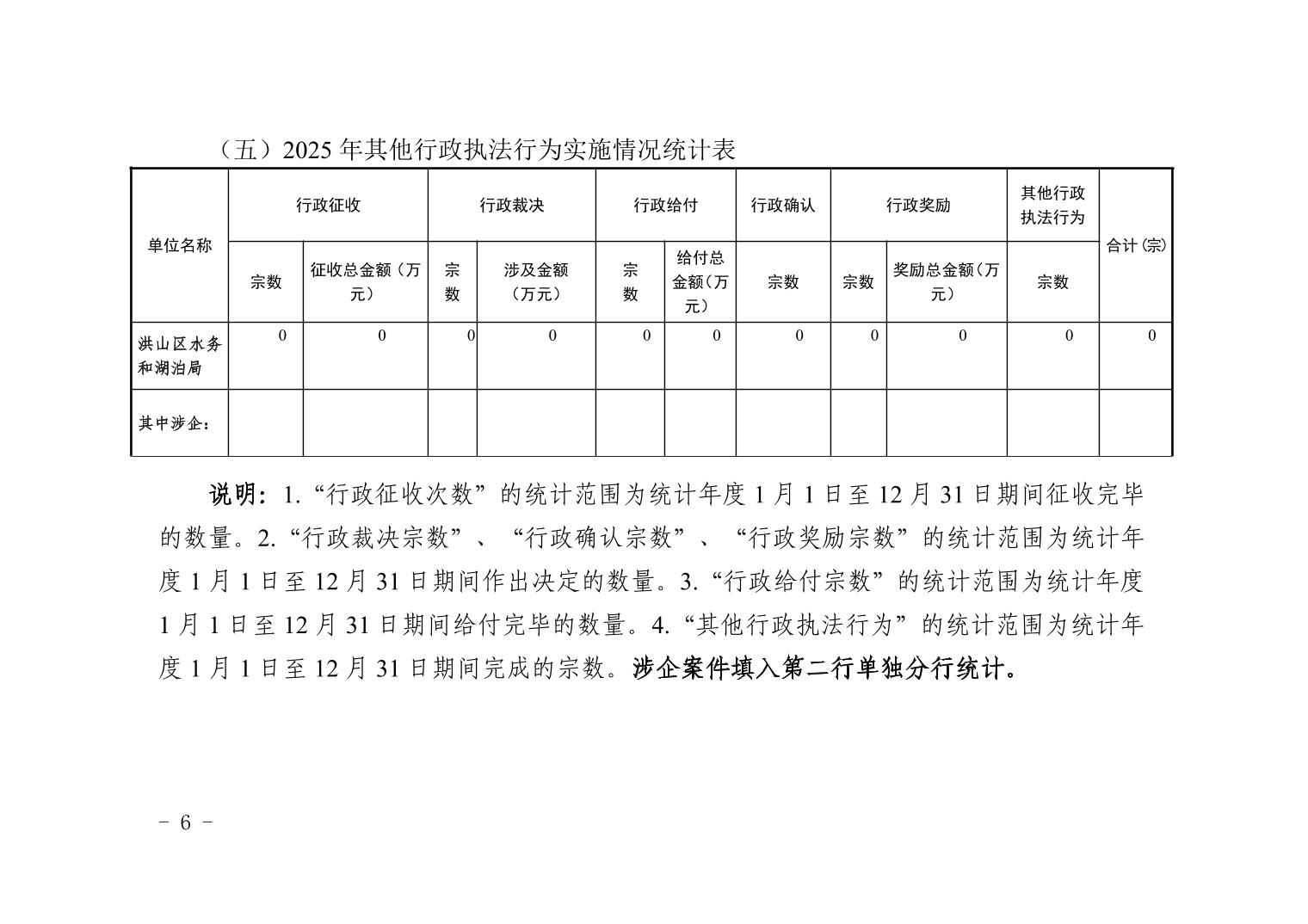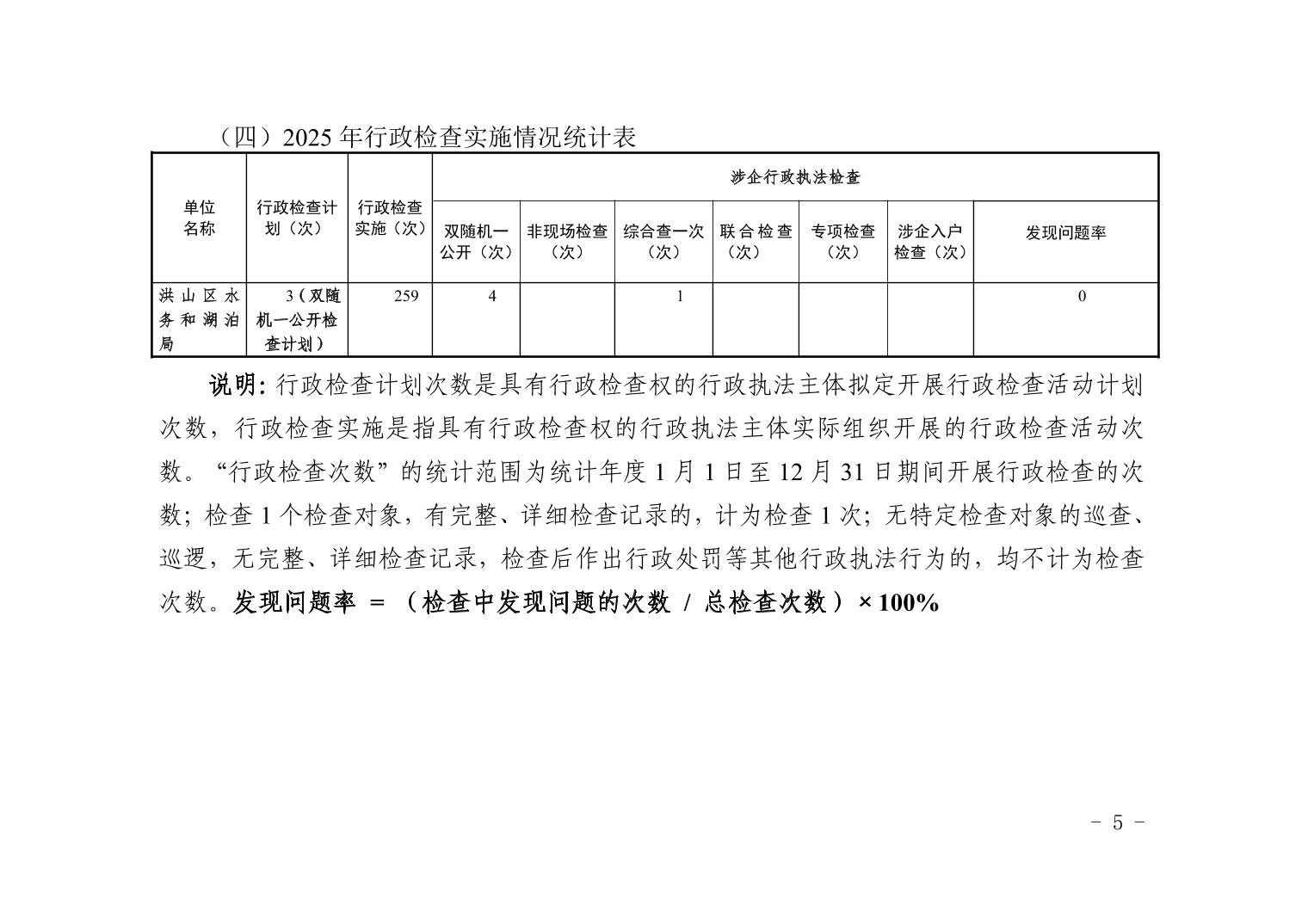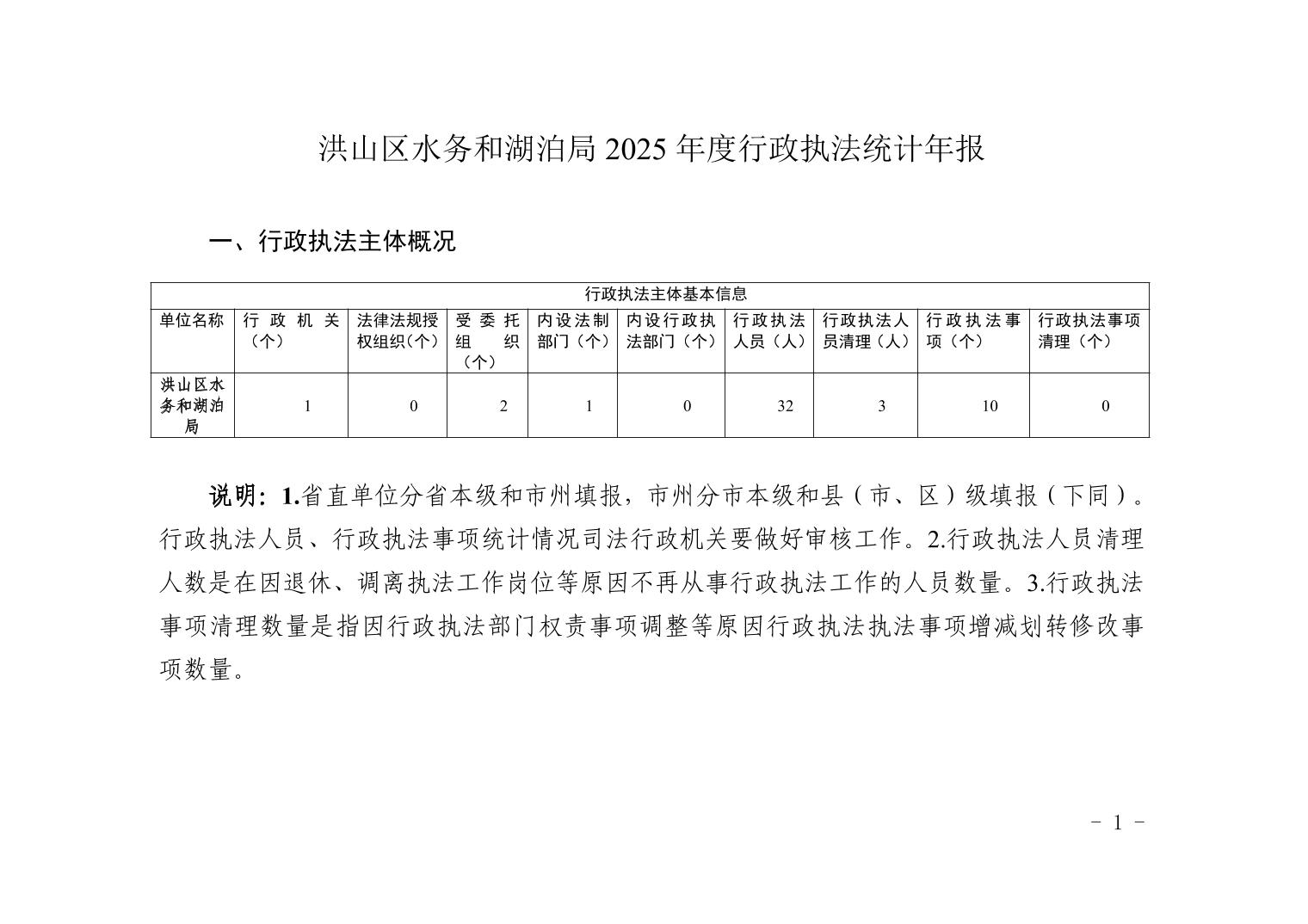 洪山区水务和湖泊局2025年度行政执法统计年报